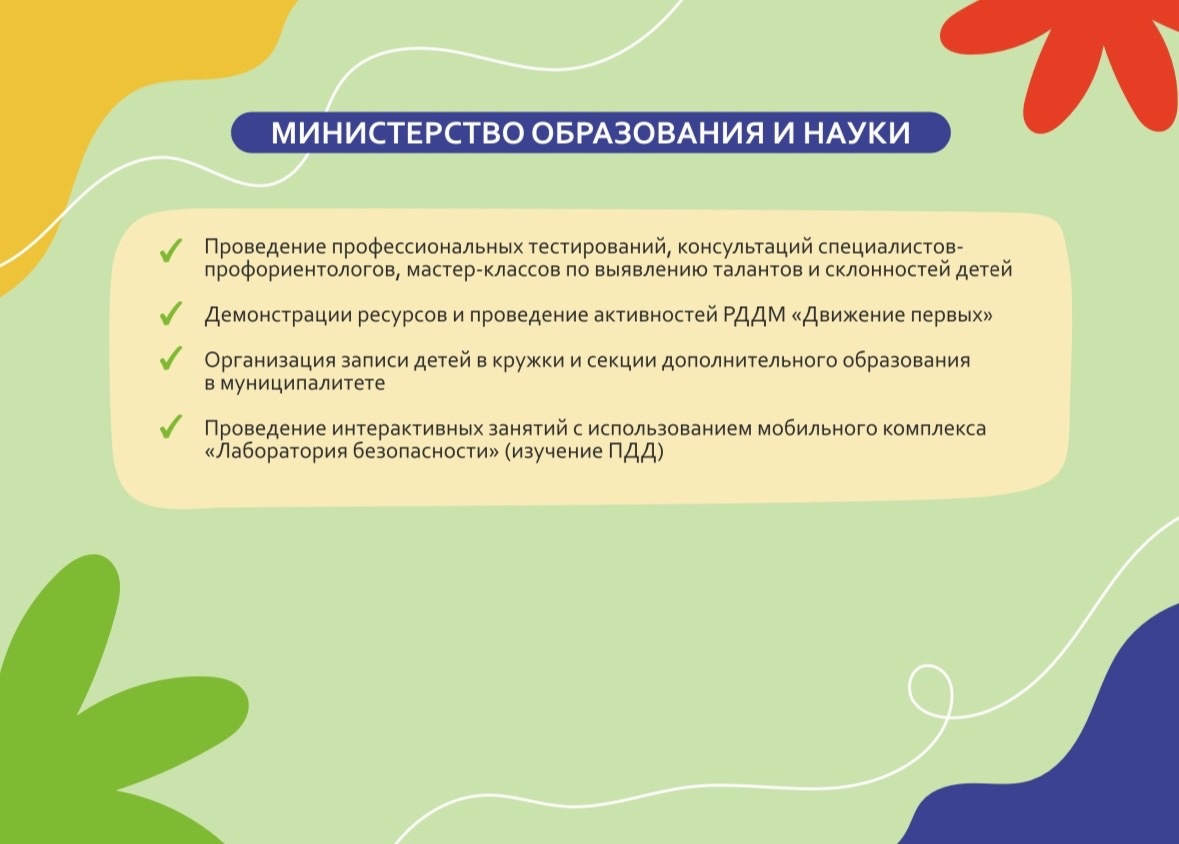 На фестивале представители региональных организаций проведут для юных жителей Озерска тестирование на выявление профессиональных интересов. Родители школьников смогут получить консультацию специалистов-профориентологов. Также будут организованы мастер-классы по выявлению талантов и склонностей детей.