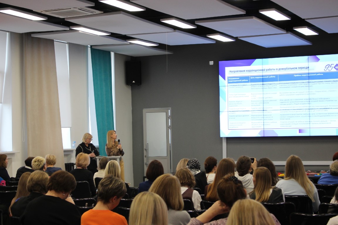 Атмосфера была невероятно теплой и продуктивной. Педагоги показали настоящее разнообразие форм работы и богатство дидактического материала: от авторских игр на запуск речи до уникальных сенсорных пособий. Зал был полон: живое, искреннее общение сразу переросло в профессиональную дискуссию. Было видно, насколько тема отозвалась коллегам — участники конференции конспектировали интересные приёмы и интересовались пособиями.