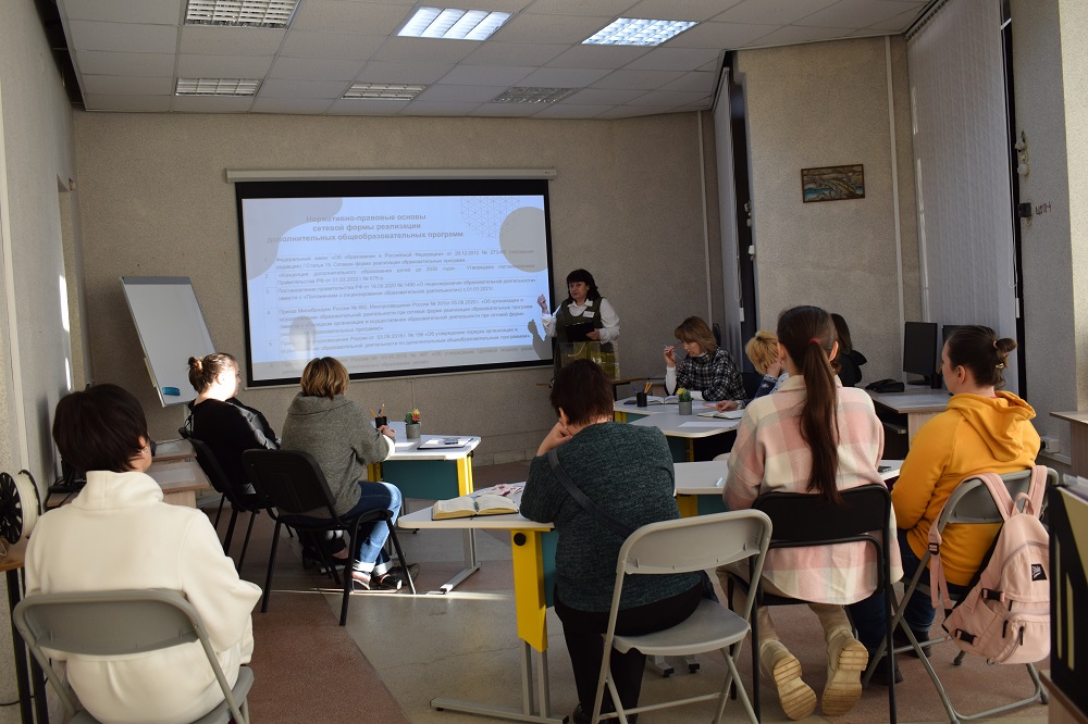 Методическое мероприятие было посвящено теме «Реализация дополнительных общеобразовательных общеразвивающих программ в сетевой форме». Само название мероприятия подсказало работникам методической службы форму проведения заседания Клуба эффективного педагога, где достаточно сложный для восприятия теоретический материал закреплялся и уточнялся в игровых заданиях.