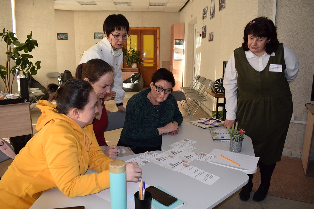 Второе сообщение «Модели реализации дополнительных программ в сетевой форме» подготовила методист Муниципального опорного центра Людмила Юрьевна Новик. На конкретных примерах программ коллег из Челябинской области она познакомила присутствующих с двумя типовыми моделями образовательных программ, реализуемых в сетевой форме, и их особенностями. Для закрепления представленного материала также была предложена игра: нужно было разложить карточки с наименованиями отдельных ресурсов в нужный «садок». Победителем в этой игре стала команда, которая кроме предложенных ресурсов, назвала ещё несколько дополнительных.