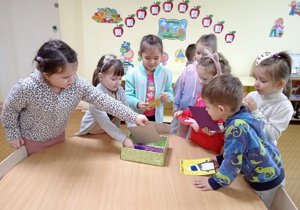 Дети с удовольствием вырезали, рисовали и писали новогодние поздравления. Затем бережно укладывали свои поделки в красивую коробку.