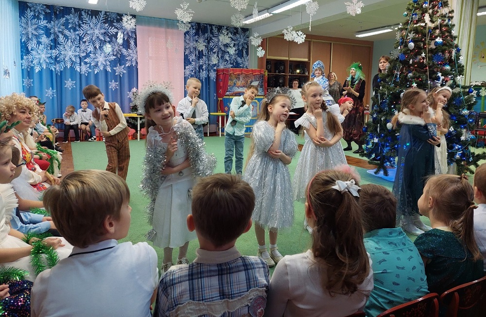 Все участники проявили себя как настоящие артисты, выступив в ярких номерах праздника: веселый «Новогодний оркестр» и нежный танец «Снежинок» из детского сада «Теремок», заводные «Елочки», задорные танцы «Этот Новый год», «Снег идёт» и душевная песня «В королевстве детей» из детского сада «Сказка».