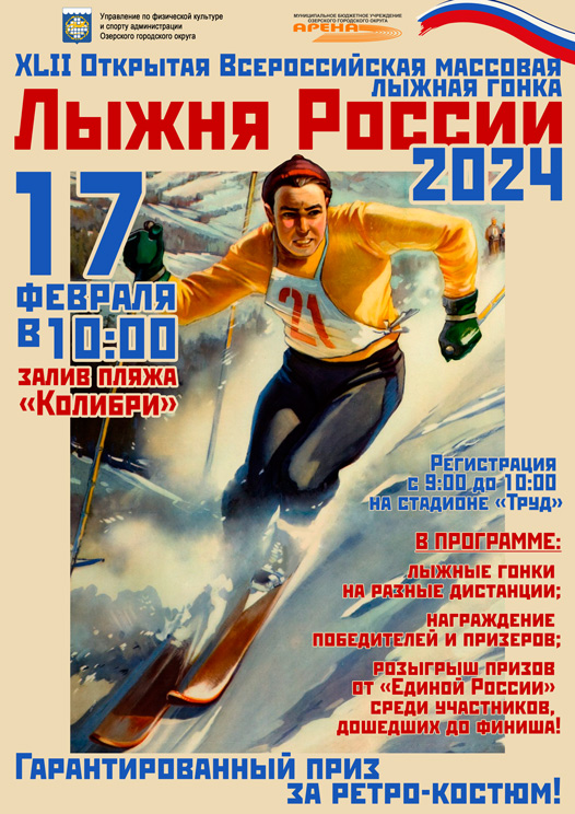 17 февраля в 10:00 состоится XLII Открытая всероссийская массовая лыжная гонка "Лыжня России 2024".