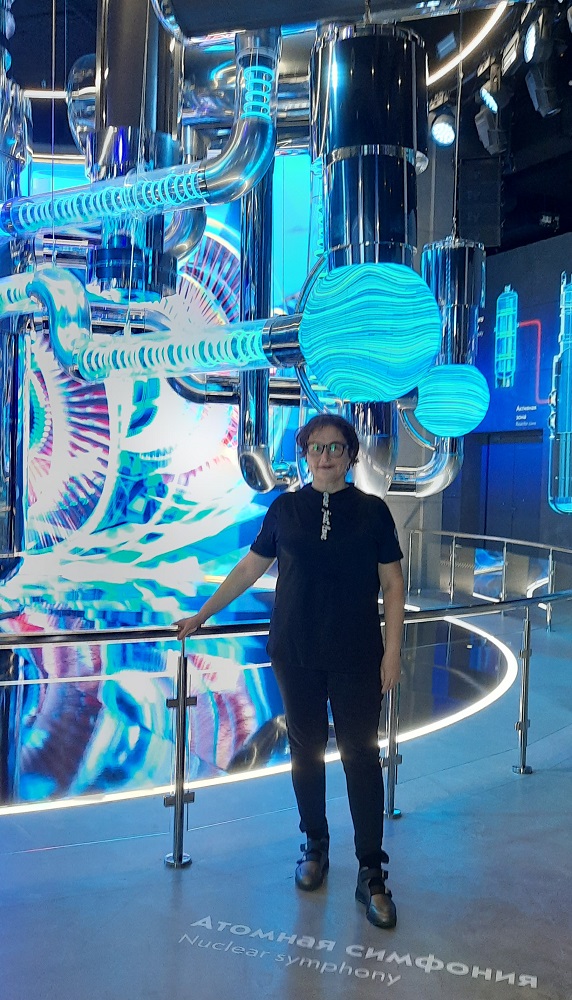 Марафон проходил на ВДНХ в павильоне "Атом", который на сегодняшний день является самым крупным в России просветительским комплексом, посвященном истории ядерной эпохи. Он открыл свои двери для посетителей совсем недавно, в ноябре 2023 года, но уже приобрел популярность среди москвичей и гостей столицы. Павильон представляет собой здание с тремя подземными и четырьмя надземными этажами. Это не памятник исторической модели атома, а интересное и вдохновляющее пространство, место творческого созидания. Из всего разнообразия экспозиций павильона «Атом» озёрским педагогам оказалась особенно близка тема выставки «Люди и города». Это пространство можно было бы назвать представительством страны Росатом, которая объединяет более 400 предприятий атомной отрасли. Относящиеся к ней научные и промышленные поселения - это 31 атомный город по всей России. Какое же чувство гордости и радости вызвали наш герб, фотографии и стенды, посвящённые истории Озёрска!