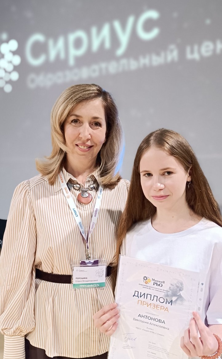 Призером заключительного этапа олимпиады имени Дж.К. Максвелла стала ученица 8 класса МБОУ «Лицей №39» Антонова В. (учитель Порошина Е.В.)