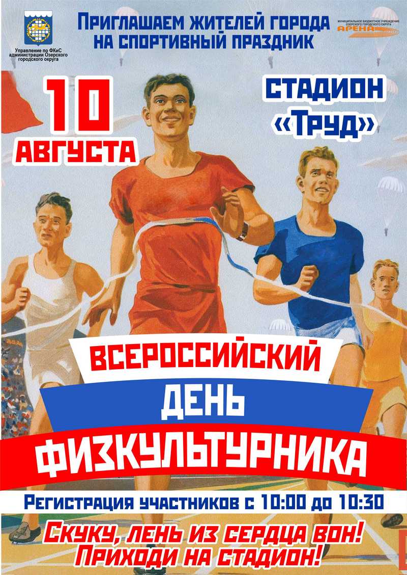 Приглашаем принять участие в спортивном празднике "Всероссийский день физкультурника - 2024" 10 августа на стадионе "Труд".
