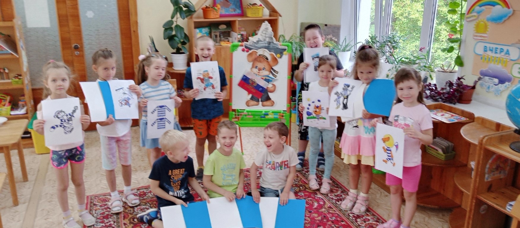 Об этом и многом другом сегодня узнали ребята группы «Совята». Они вспомнили, кто из героев сказок и мультфильмов тоже любил полосатую одежду. А еще ребята пришли к выводу, что у разных родов войск полоски разного цвета неспроста. Ведь они являются для военных символами, например, темно-синие полоски напоминают воды морей, голубые – чистое небо, оранжевые – языки пламени. Но каким цветом не были бы полоски, носить тельняшку – это большая гордость для любого военного.