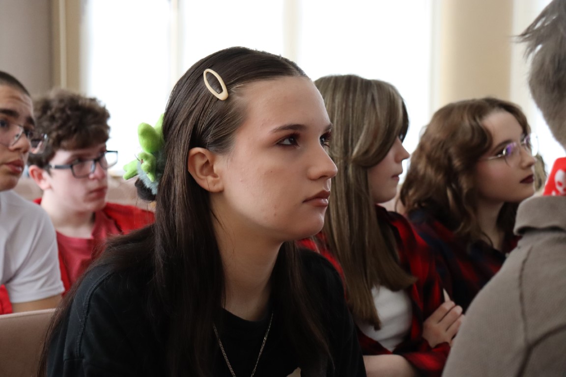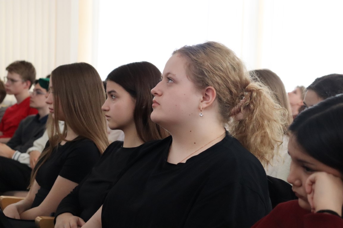 В гостях у девятиклассников побывала специалист по кадрам Ольга Ахлюстина. Она постаралась выступить не просто с докладом, а превратить встречу в диалог о будущем. Ольга Владимировна рассказала о миссии и стратегических целях предприятия, ключевых производствах и возможностях для карьерного роста молодежи в атомной отрасли.