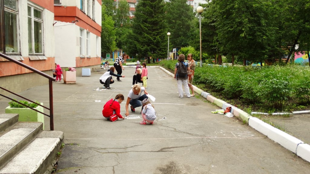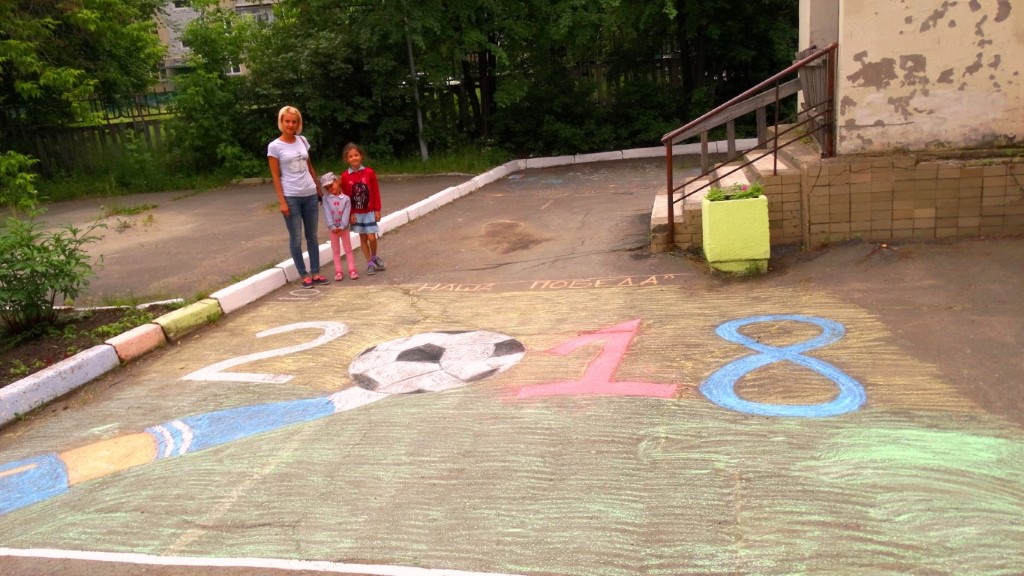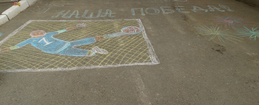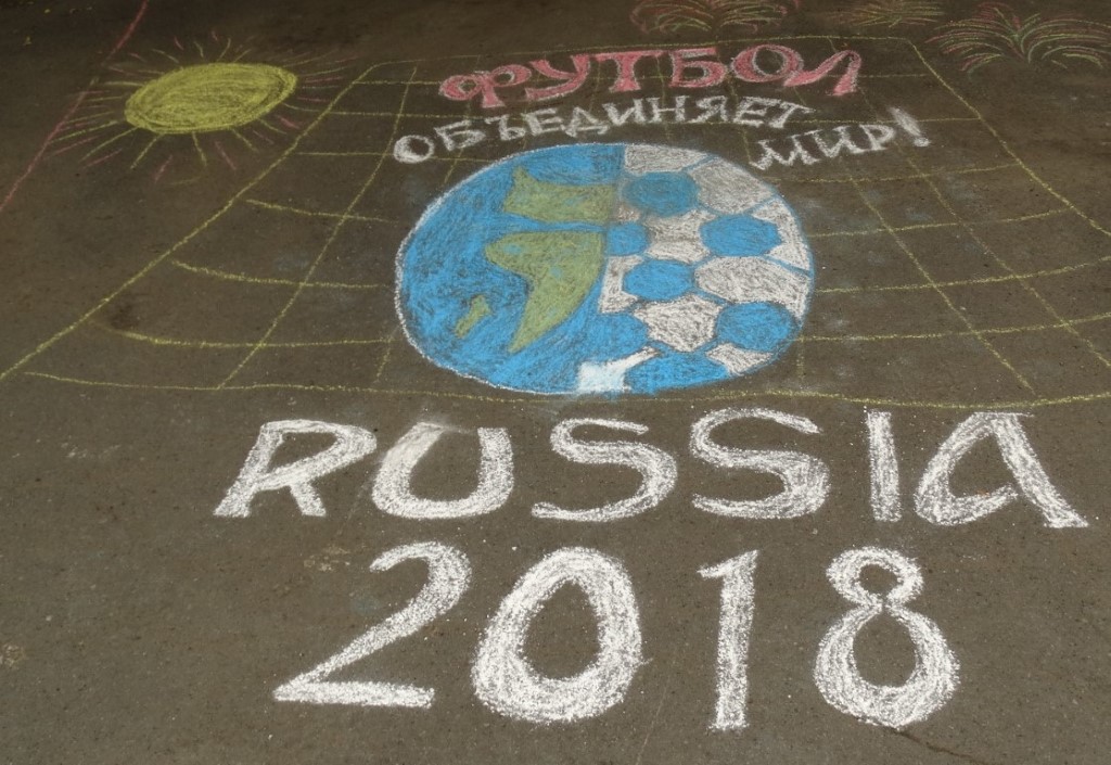 Каждой команде было отведено отдельное место на территории ДОО. На выполнение работы давалось не более 45 минут. Тематика рисунка посвящалась ЧМ по футболу.