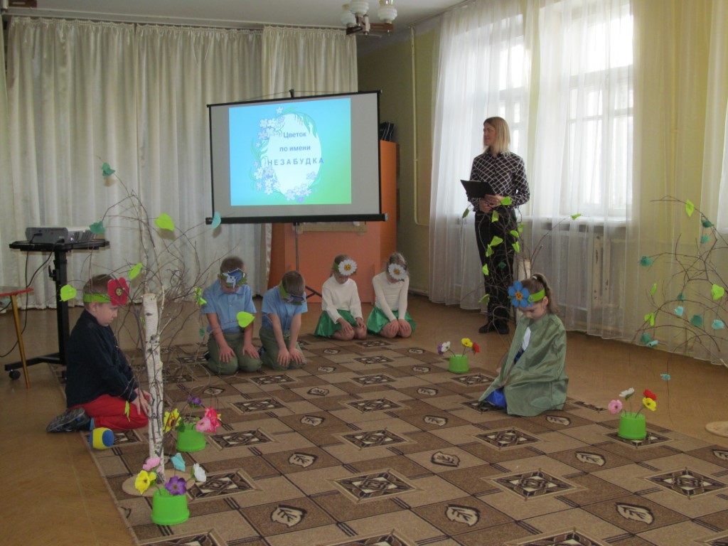 В процессе подготовки практической части данного этапа творческая группа педагогов МБДОУ ДС №26 (педагог-психолог Королева Н.А., воспитатели Архипова А.Н., Букина И.Ю.) поставили с детьми подготовительной к школе группы сказку «Цветок по имени Незабудка» (автор О. Гавриченко).