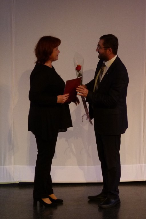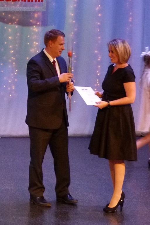 С поздравлениями выступили первые лица города - глава Озерского городского округа Евгений Юрьевич Щербаков, заместитель главы Олег Владимирович Ланге, председатель Собрания депутатов Озерского городского округа Андрей Анатольевич Кузнеченков, председатель профсоюзного комитета городских и коммунальных предприятий Людмила Николаевна Барышникова. Церемония награждения лучших педагогов Почетными грамотами и благодарственными письмами Министерства образования и науки Челябинской области, Главы города, собрания депутатов, Управления культуры проходила при несмолкаемых аплодисментах.