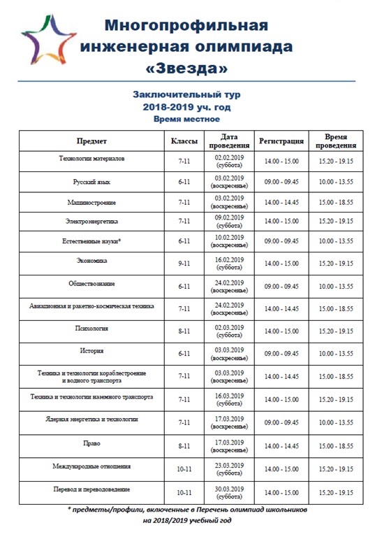 Обучающихся преодолевших порог проходного балла, ждет заключительный этап олимпиады, который пройдет в городе Челябинск с 02 февраля по 30 марта 2019 года.