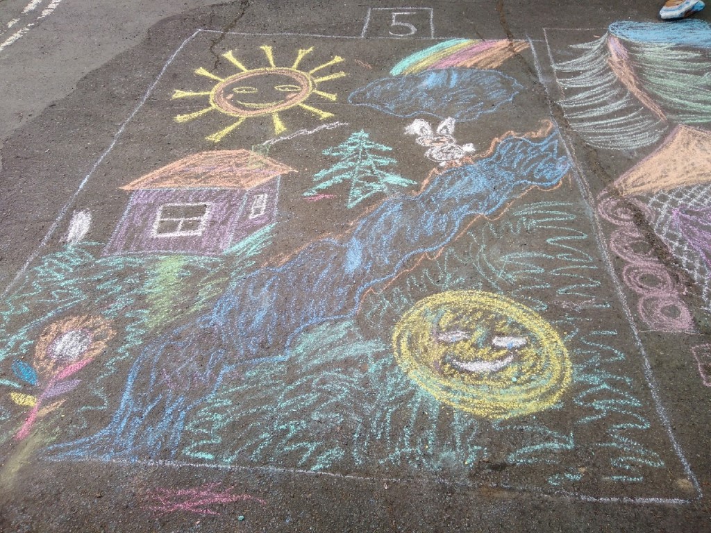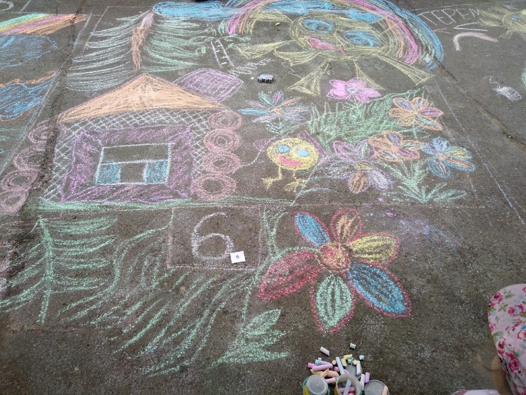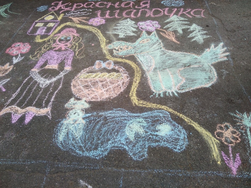 Каждой команде было отведено отдельное место на территории ДОО. На выполнение работы давалось не более 45 минут. Тематика рисунка посвящалась сказкам.