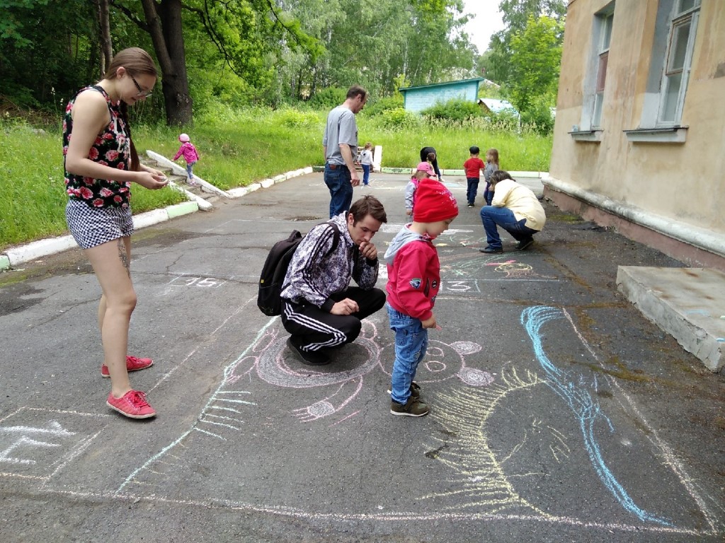 Наш детский сад тоже решил не оставаться в стороне и провел 25.06.2019 г. на территории здания по Южной 3а (п.Татыш) детско-родительский конкурс рисунков на асфальте «Сказка творит чудеса» с целью раскрытия творческого потенциала, заложенного в детях, через создание художественных образов и повышения ценности семейного воспитания.