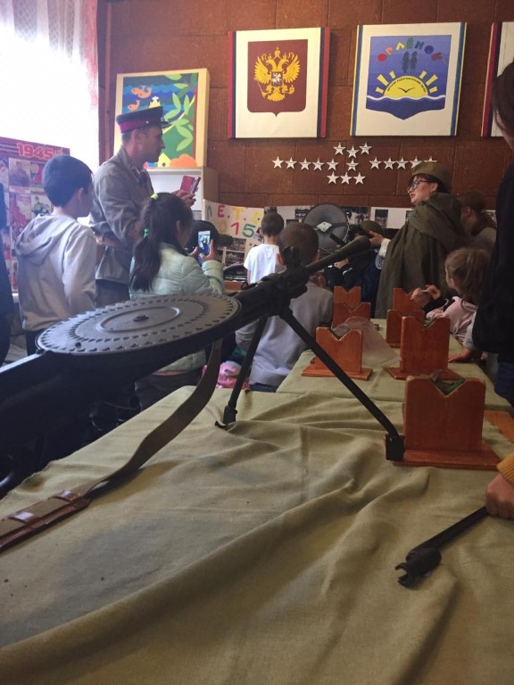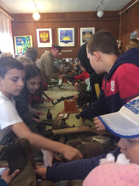Незабываемые впечатления оставила передвижная выставка «Оружие победы», которая прошла в «Штабе орлят». Нам рассказывали о Великой Отечественной войне, о солдатах, вооружении и снаряжении. Было представлено много военных экспонатов: винтовки, пистолеты, стальные нагрудники и даже плащ-палатка. А ещё мы увидели агитационные и сатирические плакаты на тему войны 1941-1945 гг., ордена, знамёна и множество медалей. Было очень интересно услышать о том, как жили те, кто воевал. А ещё здорово, что потом мы смогли подойти, подержать в руках все представленные экспонаты и сделать фото на память.