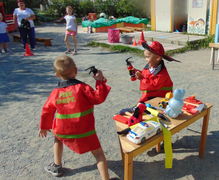 С ребятами в подвижных, дидактических и настольных играх в доступной и занимательной форме закреплялись правила безопасного поведения в быту и на природе. Педагоги с девочками и мальчиками рассматривали альбомы на пожарную тематику, разговаривали о профессии - пожарный, смотрели презентации и мультфильмы по пожарной безопасности. В сюжетно – ролевых играх «юные пожарные» моделировали ситуации, обыгрывали их, учились находить правильное решение.
