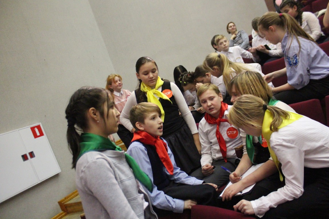 После представления интересные вопросы на тему «Дорожный знак» приготовила каждая команда своим соперникам. Счастливый билетик в этом гейме достался ребятам из школы 34, которые отвечали на вопрос от членов жюри. В гейме «Дальше, дальше» команды попытались найти правильные ответы на вопросы из истории дорожных знаков, правил для каждой категории участников дорожного движения. «Музыкальный» гейм не позволил ребятам расслабиться, так как вопросы были не просто музыкальные, а содержали слова и строчки про дорогу и транспорт. При подготовке к игре ребята не только вспоминали правила дорожного движения и дорожные знаки, но и учились накладывать повязки «условному» пострадавшему. Свои умения оказания первой медицинской помощи команды продемонстрировали в гейме «Заморочки из бочки». И последний, самый творческий гейм – это «Азбука дорог», где ребята представляли новые дорожные знаки для пассажиров. Целый блок таких знаков оригинально и музыкально презентовала команда школы № 33.