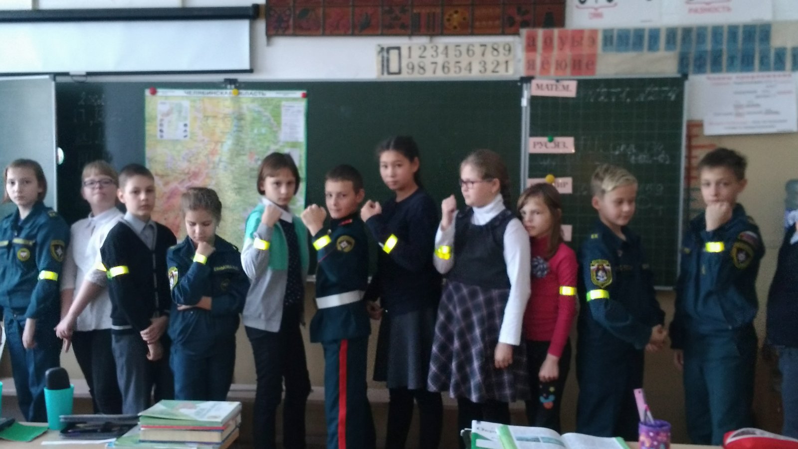 В конце классного часа Галина Анатольевна выдали каждому четверокласснику световозвращающий элемент в виде браслета.