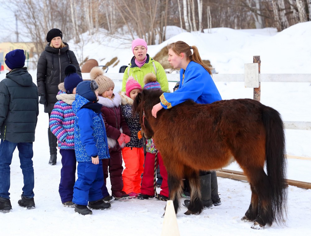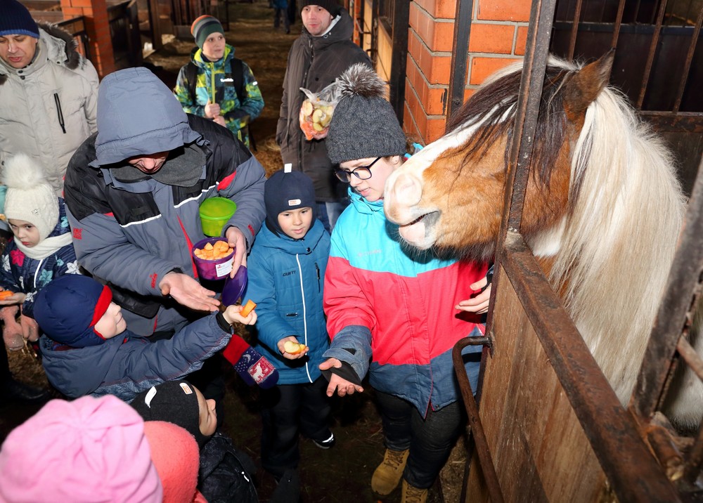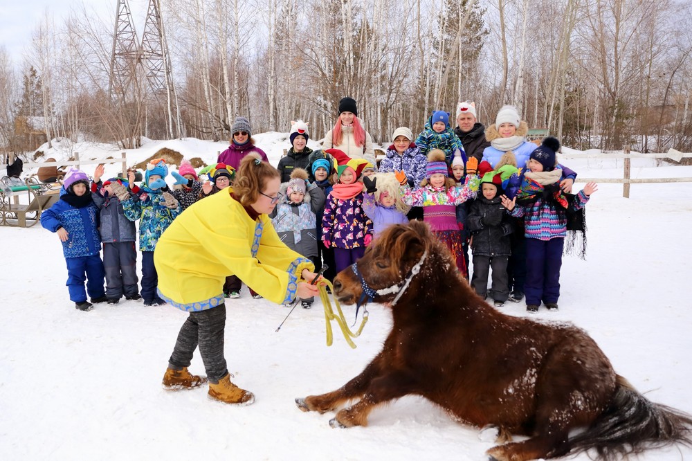 23 февраля дети старшей группы №6 «УМки» МБОУ СОШ №32 вместе с родителями и воспитателями отправились в конно-спортивный клуб "HORSESBURG", чтобы отметить День Защитника Отечества. Всё началось с экскурсии по конюшне, где кроме лошадей содержатся разные животные: куры, белки, пони, козы, северные олени, як, лама. Многих животных инструкторы разрешали погладить и покормить. Некоторые дети сначала с опаской давали корм животным, вскоре освоившись, стали смелее. Сколько было роздано угощения животным! И моркови и яблок! А сколько нового ребята узнали о разных породах лошадей, северных оленях, пони и яке.