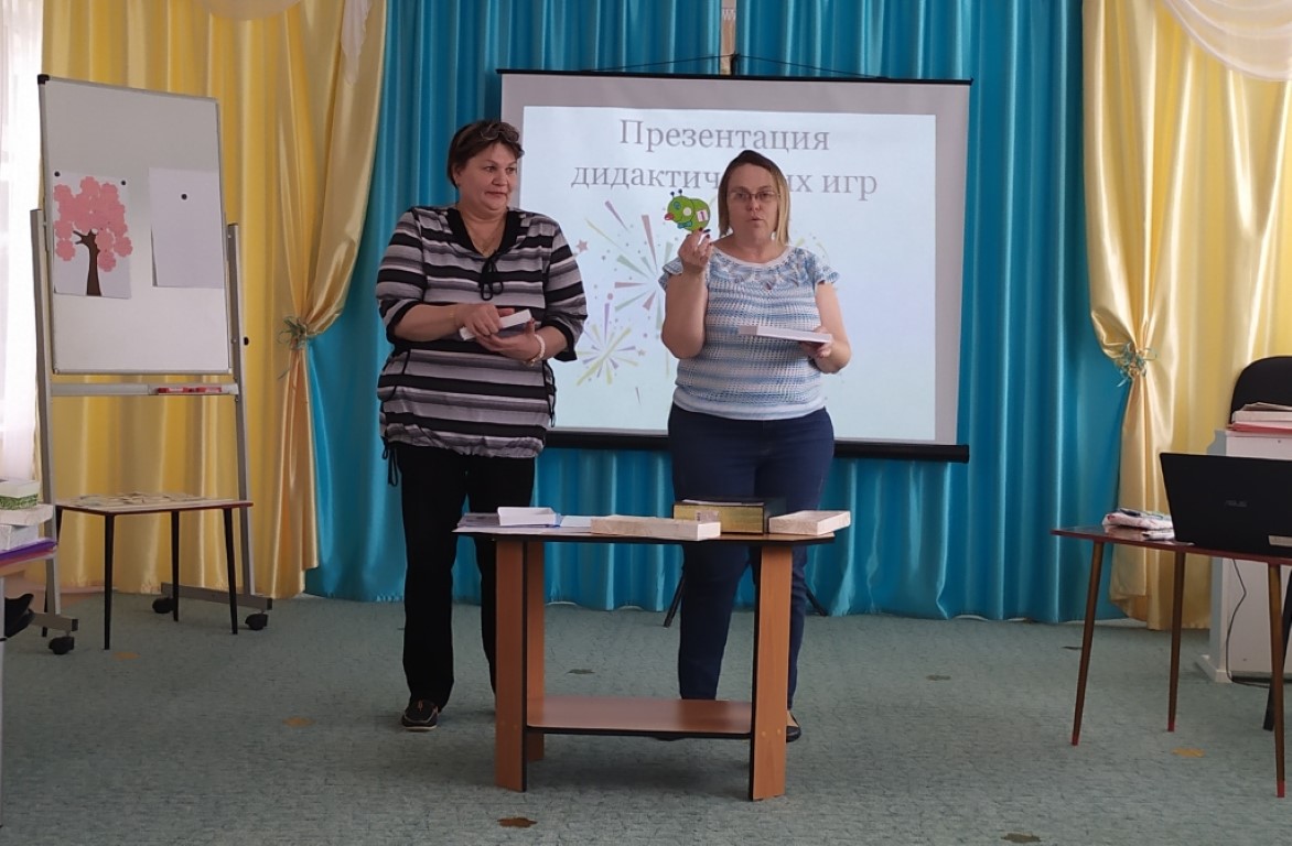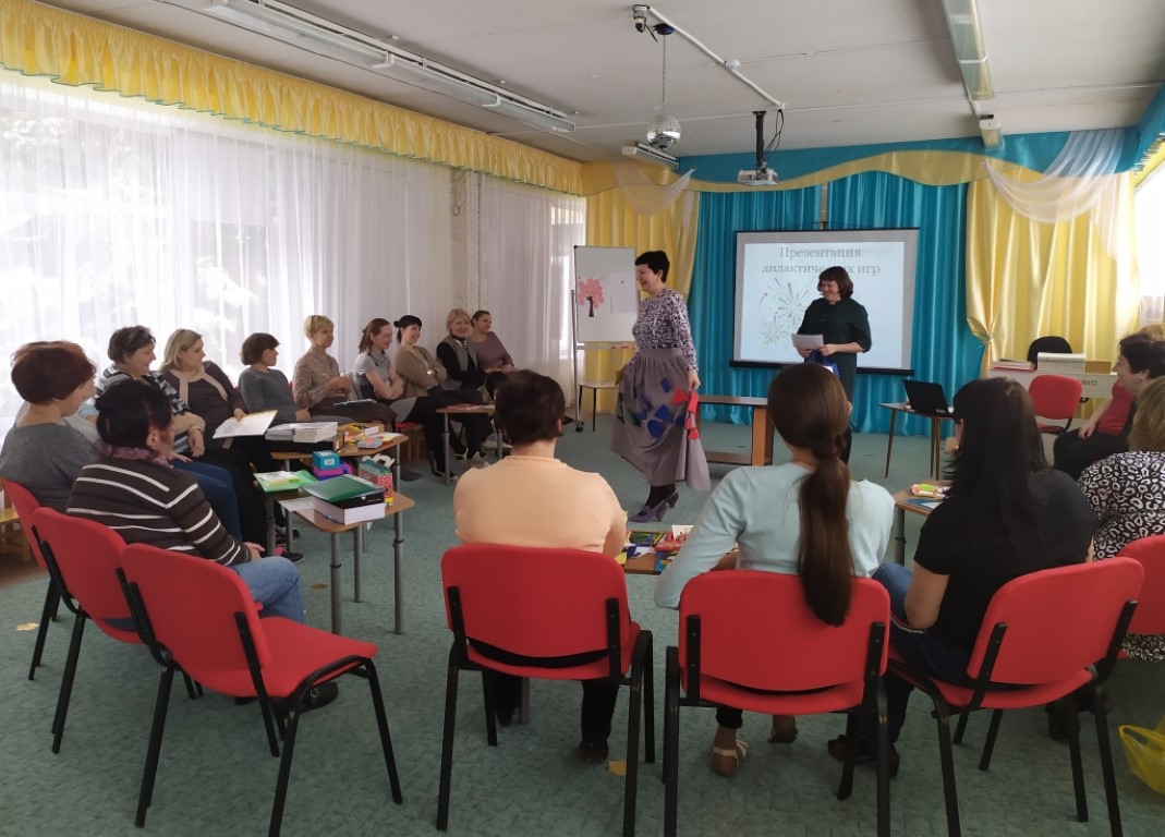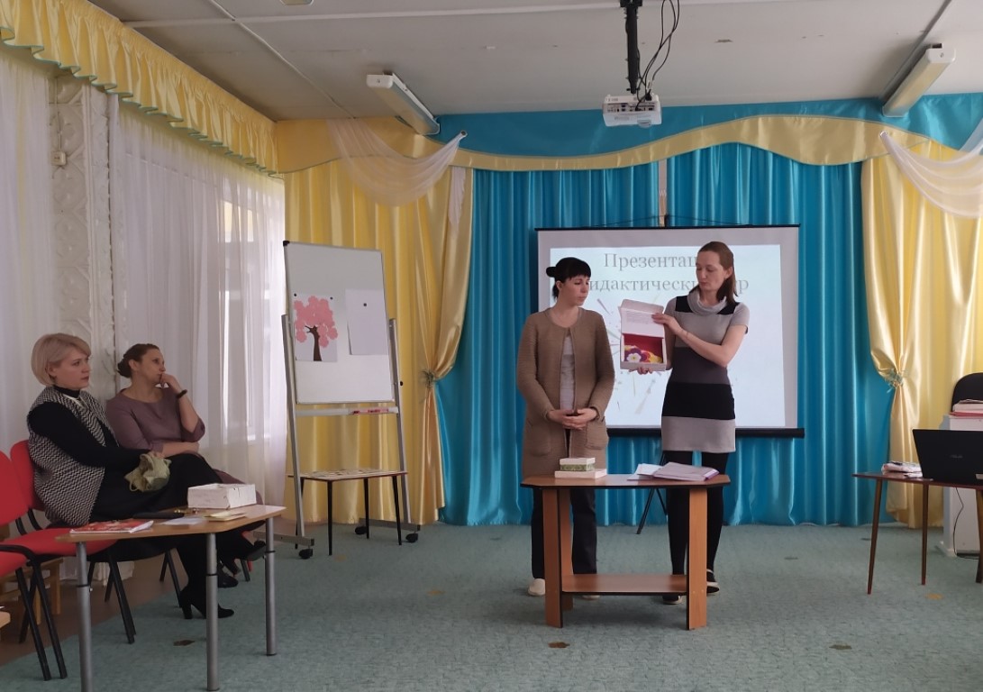 Семинар проходил в рамках ГМО старших воспитателей. Коллеги из детских садов№10, 15,51 и 55 отметили креативный подход педагогов «Теремка» к использованию новых материалов в изготовлении дидактических игр.