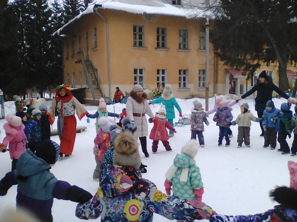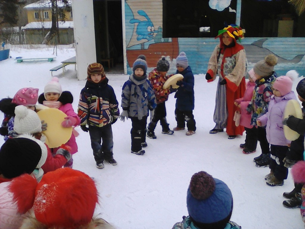 Праздник открыли герои – Зима со Скоморохом, они развлекали детей народными играми, песнями и закличками, которые подготовили и выучили с детьми педагоги групп.