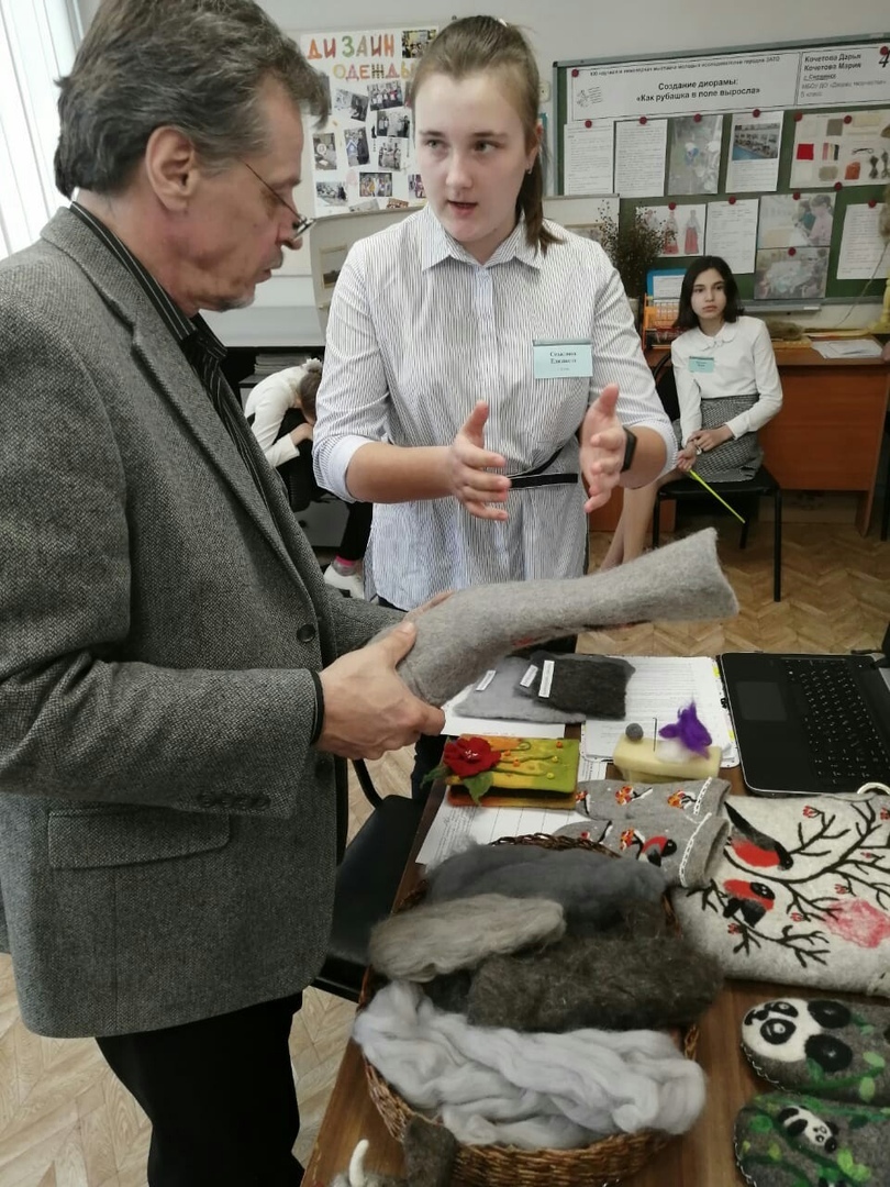 Лиза отлично справилась с поставленной задачей и получила высокую оценку членов комиссии. В перерывах между выступлениями Лиза находила время обучать технике сухого валяния интересующихся ребят, участвующих в выставке.