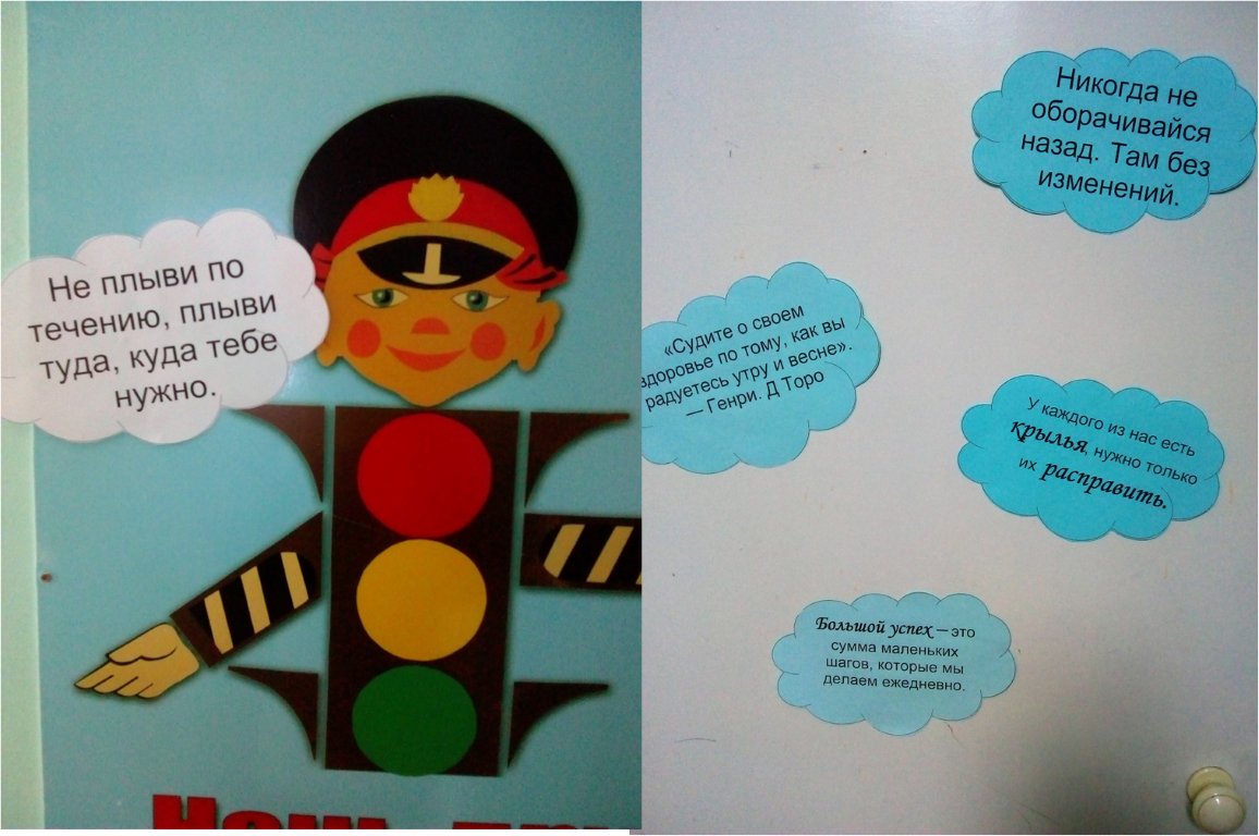 В коридорах детского сада родителей и педагогов встречали мотиваторы – облака, создавая позитивное настроение и отклик в душе каждого.