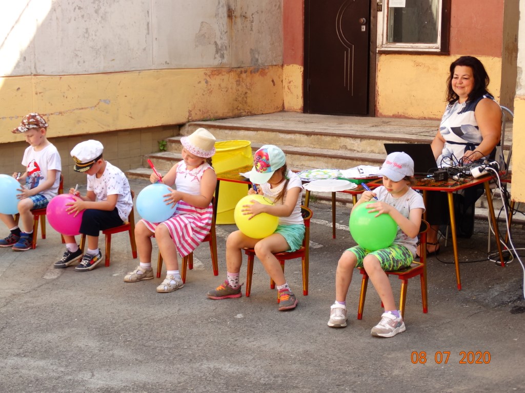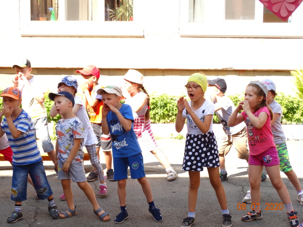 На участок группы 5т по ул. Южная 3-а пришли герои - домовой Кузя и Ромашка. Дети вместе с Кузей и Ромашкой играли в подвижные игры, отгадывали загадки, склеивали ромашки, танцевали под веселую музыку. В завершении праздника Кузя и Ромашка подарили детям волшебные мыльные пузыри. Подготовили и провели праздник музыкальный руководитель Чех В.А. и инструктор по ФК Дёмин С.Р.