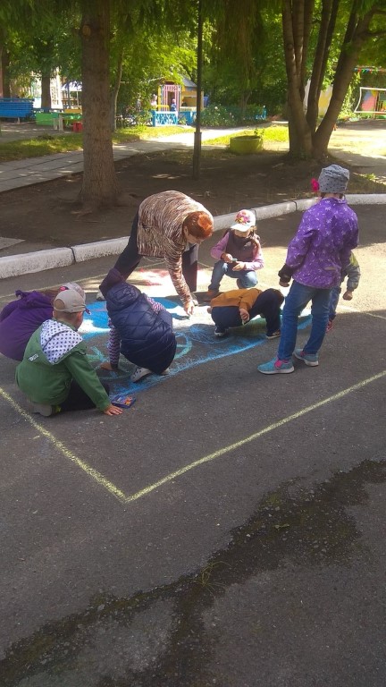 В конкурсе приняло участие 3 группы: по одной от каждого здания. Воспитатели, совместно с детьми, составили эскиз и перенесли свой замысел на асфальт. Работы получились яркие и красочные.