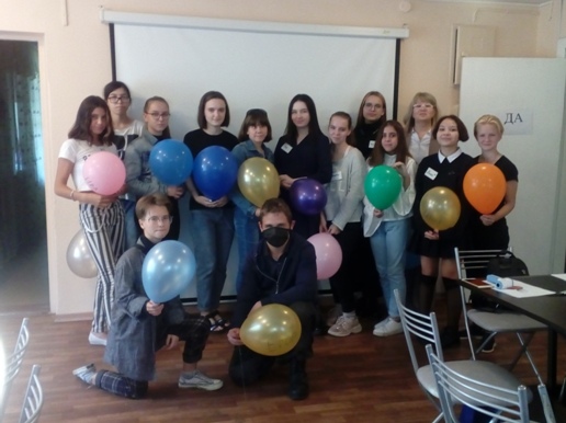 Ну и конечно, не обошлось без игр, творческих заданий. В финале занятия в кабинет высыпалось разноцветное облако воздушных шаров, с именем каждого участника занятия. Ребятам была поставлена задача: разобрать шарики по именам. Что послужило иллюстрацией поиска личного счастья через дружеское взаимодействие и взаимопомощь.