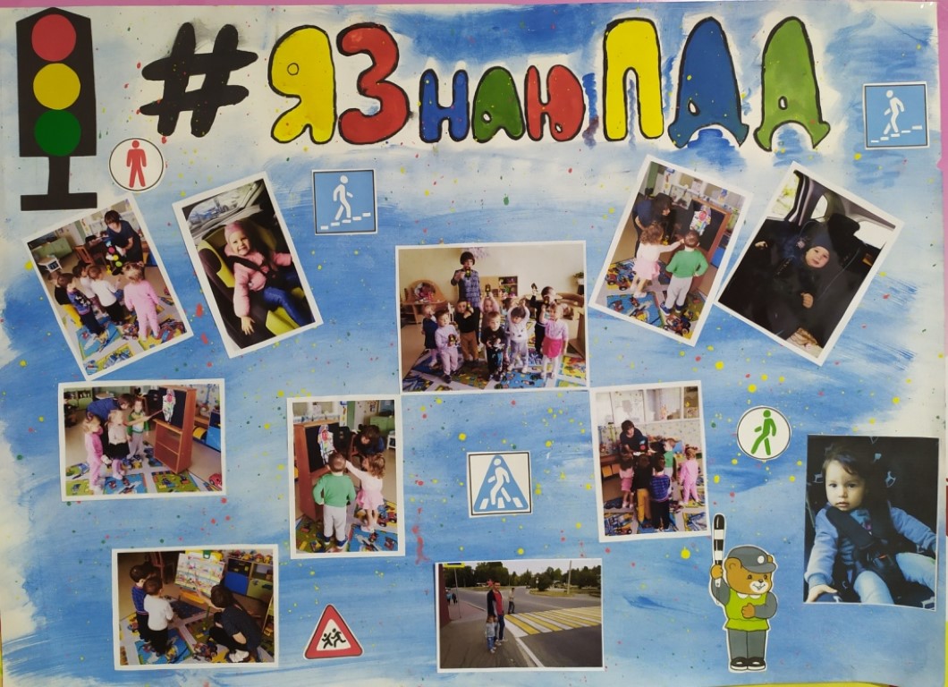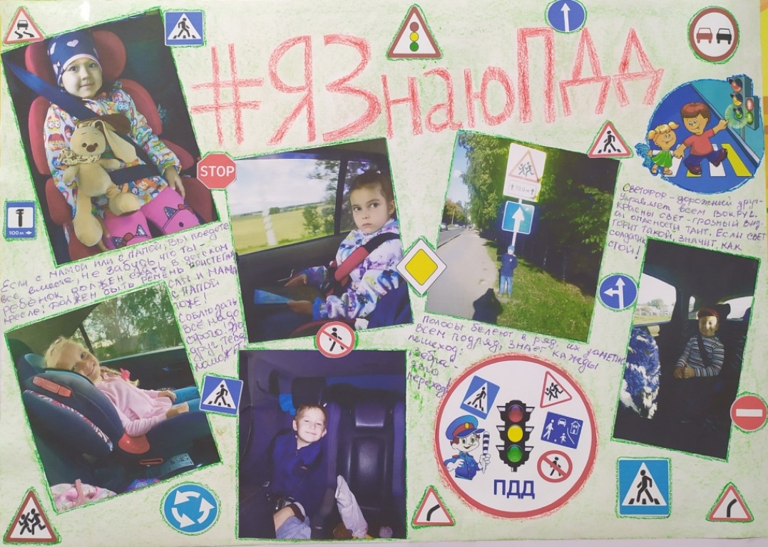 Прежде чем оформить плакаты на конкурс, была проведена большая подготовительная работа. Воспитатели беседовали с детьми о правилах дорожного движения; родители фотографировали своих детей в автокреслах, на пешеходных переходах, с велосипедами; ребята рисовали дорожные знаки, играли в дидактические игры из серии «Дорожная азбука», смотрели видеоролики «Смешарики на дороге».