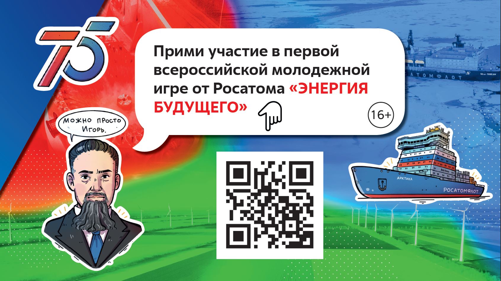 Корпорация РОСАТОМ проводит первую всероссийскую молодежную игру «ЭНЕРГИЯ БУДУЩЕГО». Участвуйте вместе с обучающимися старших классов показывайте лучшее время и выигрывайте ценные призы от Росатома!