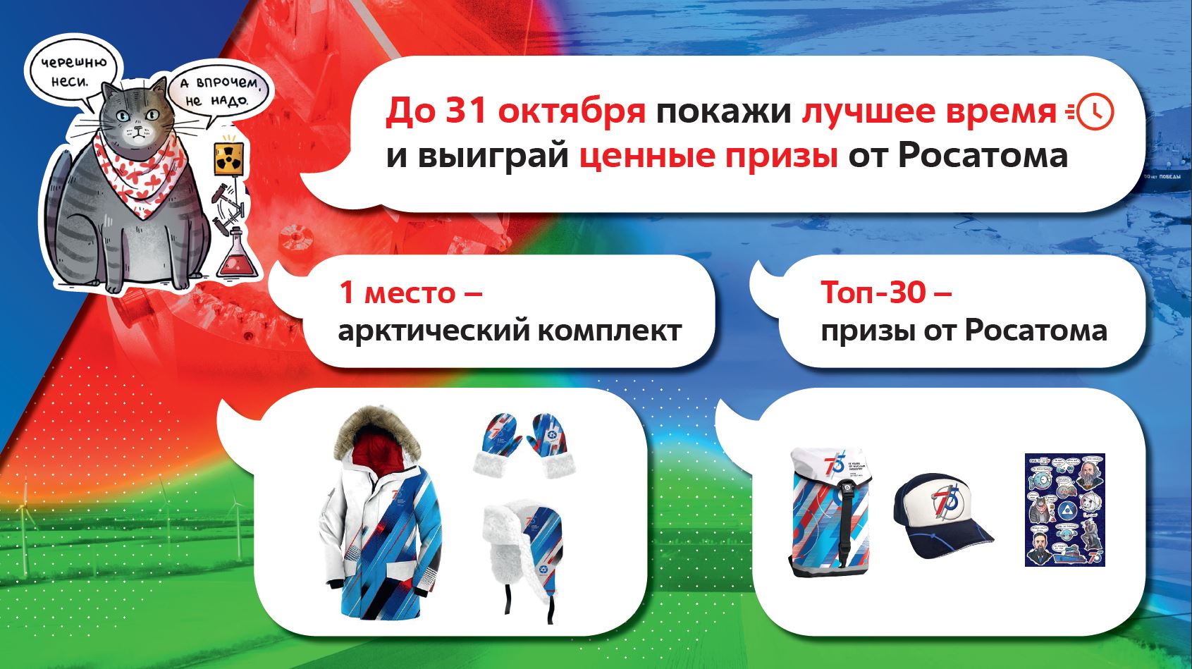 Тридцать самых активных участников в возрасте от 16 лет получат уникальные, выполненные в стилистике 75-летия атомной промышленности, подарки: бейсболки, рюкзаки и стикерпаки! А победитель получит арктический комплект, в котором тепло даже на борту атомного ледокола!