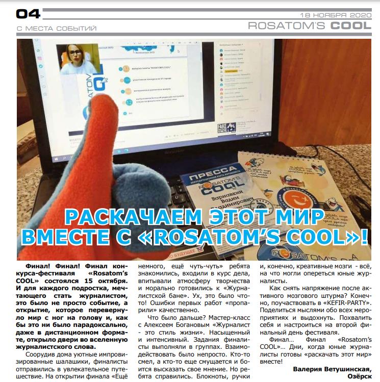 Финал! Финал! Финал конкурса-фестиваля «Rosatom’s COOL» состоялся 15 октября. И для каждого подростка, мечтающего стать журналистом, это было не просто событие, а открытие, которое перевернуло мир с ног на голову и, как бы это ни было парадоксально, даже в дистанционном формате, открыло двери во вселенную журналистского слова.