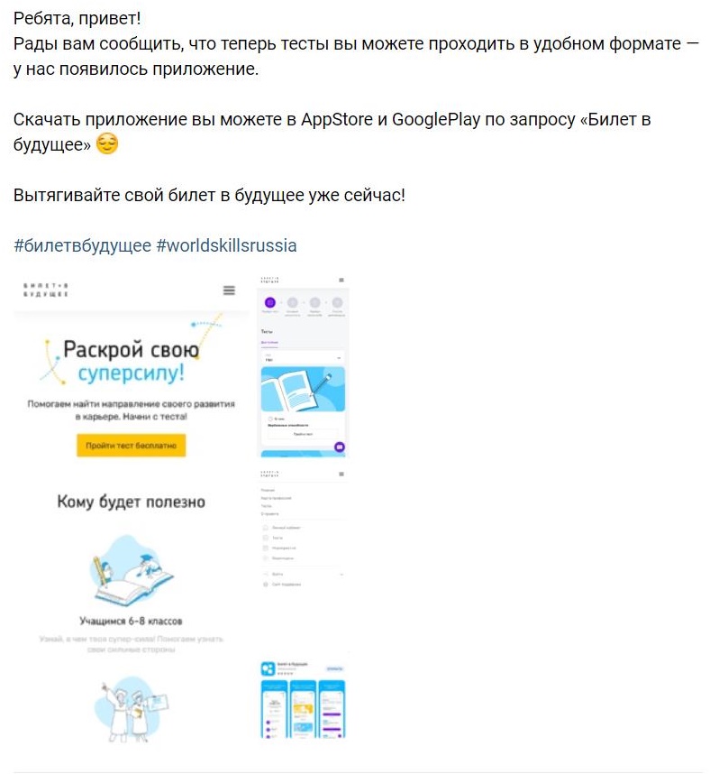 БИЛЕТ В БУДУЩЕЕ: проект по ранней профессиональной ориентации школьников 6-11 классов
