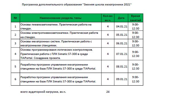 Срок обучения групп 04.01.2021 – 09.12.2021, ежедневно с 9.00 до 12.30.