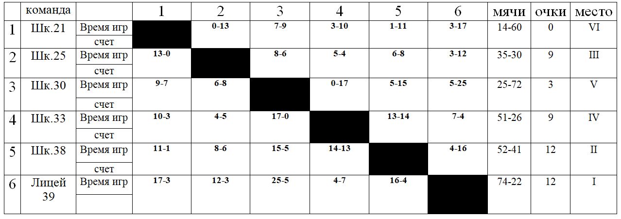 19 февраля закончились игры кругового турнира по хоккею на валенках среди мальчиков 6-8 классов. Результаты игр представлены в таблице. Большинство игр проходило в равной, бескомпромиссной борьбе, особенно в тех, где навыки юных игроков были примерно равны. В результате первых два места, набрав одинаковое количество очков -12, заняли команды лицея №39 и СОШ №38, которые, согласно положения о турнире, автоматически вышли в полуфинал турнира. Ребята из лицея №39 заняла место выше, благодаря победе в личной встрече. По этой же причине команда школы №25 в турнирной таблице оказались выше команды школы №33. Именно этим командам предстоит доказывать право участвовать в полуфинальных играх, сыграв в ¼ финала с командами школ №№30 и 21. Пока явным фаворитом выглядит команда лицея №39, но в предшествующие годы, в нашем турнире было множество сенсаций, на которые мы рассчитываем и в этом году.