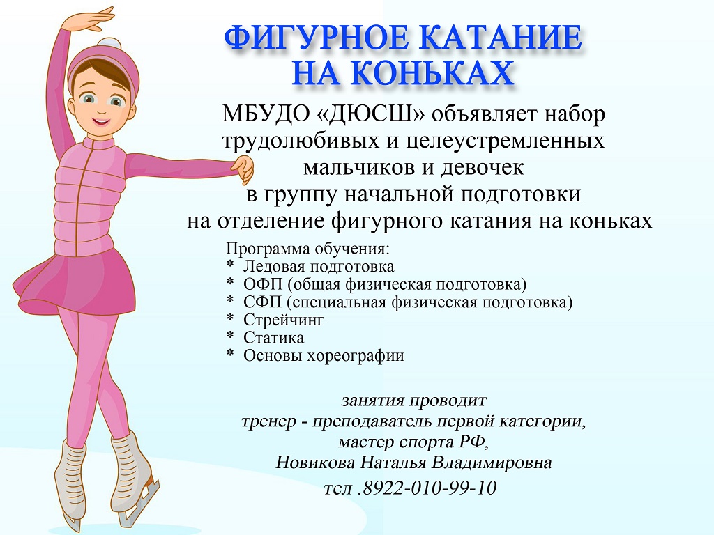 Отделение фигурного катания МБУДО "ДЮСШ" проводит добор мальчиков и девочек на занятия по фигурному катанию на коньках!